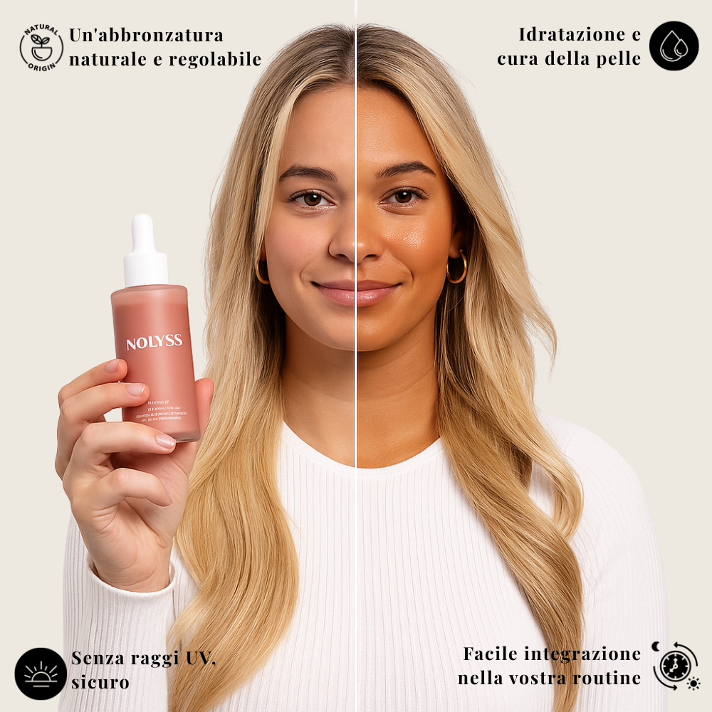💡 Consiglio: le gocce NOLYSS non sono un classico trattamento autoabbronzante: si aggiungono alla routine abituale per un'abbronzatura modulabile, naturale e senza striature.